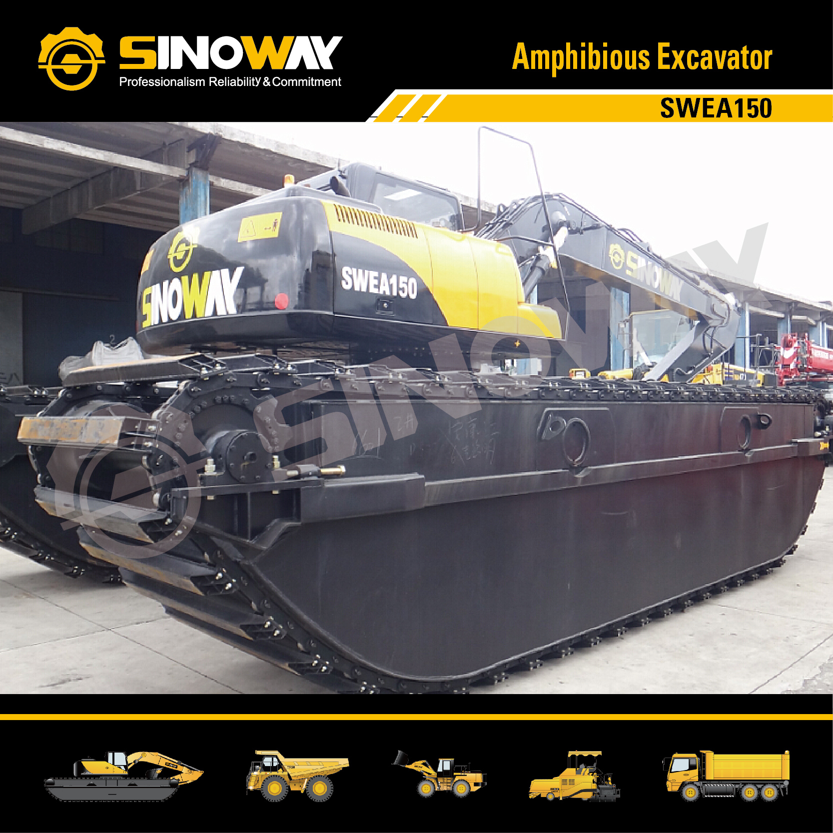 Sinoway SWEA150 amphibious excavator/marsh buggy is specifically designed to manoeuvre in marshy, swampy area and soft terrain, and it can also float on water as an added safety feature. It is completely self propelled and can virtually access all terrains, and yet